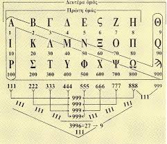 [Θ] θήτα =9 [C] τσαδαί =90 [Ω] ωμέγα =900 Υπεριώδες